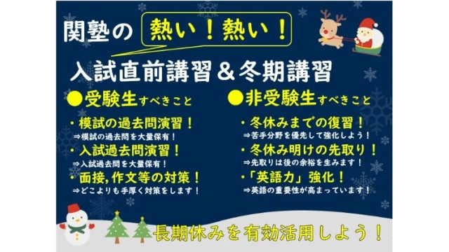 ☆1☆【11/1up】「ちょっぴり早めの関塾の冬期体験講習」の情報を更新しました!